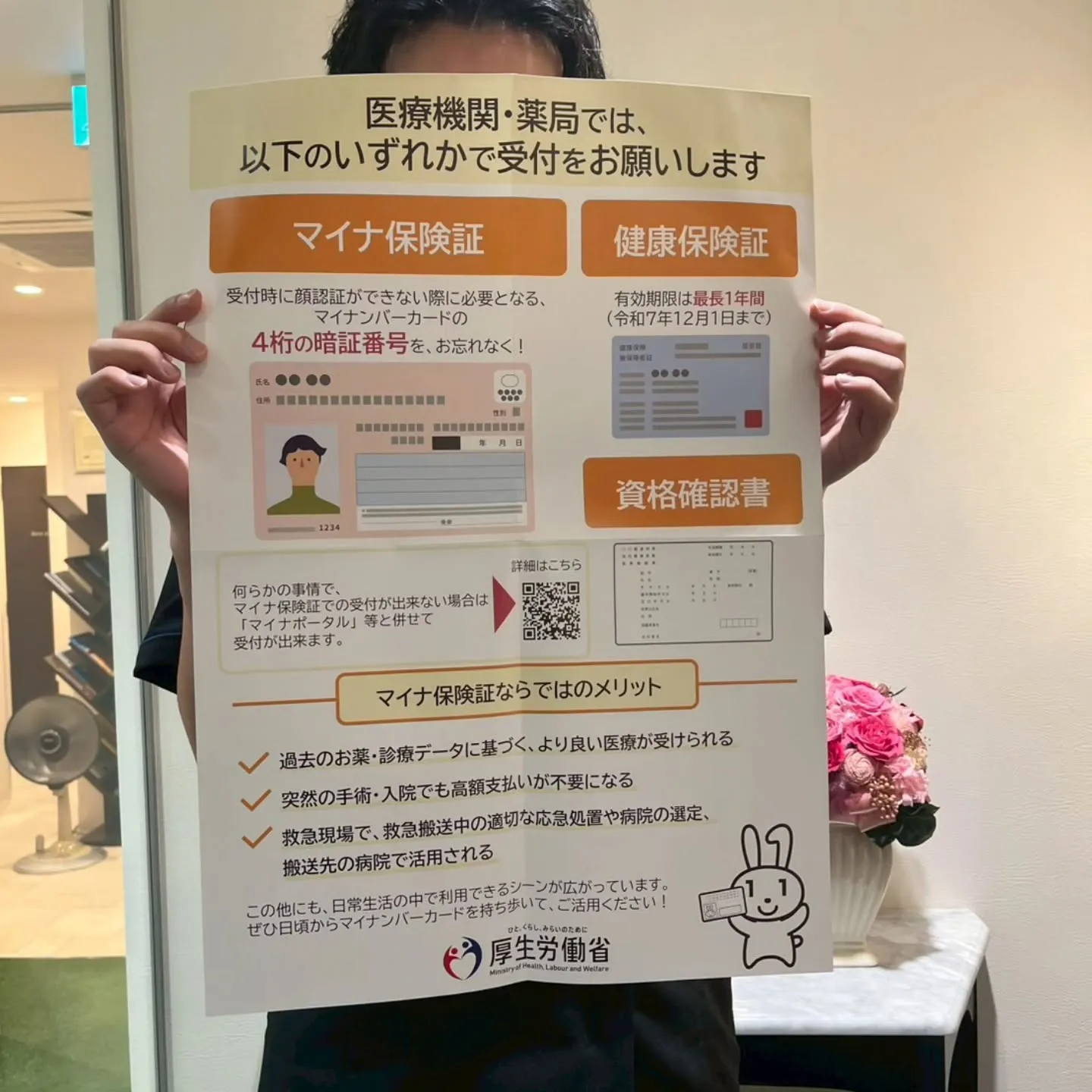 マイナンバーカードをお持ちの方はマイナンバーカードを。お持ちでない方は資格確認証が手元に届いているかと思いますので、是非ご用意のほど宜しくお願い致します🙇